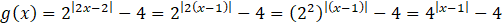 , przesuń otrzymany wykres o 1 jednostkę w prawo równolegle wzdłuż osi OX oraz 4 jednostki w dół równolegle wzdłuż osi OY: