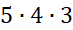 Cyfrą setek może być dowolna z pięciu podanych cyfr. Cyfrą dziesiątek może być dowolna z pięciu podanych cyfr poza cyfrą wybraną jako cyfra setek, a cyfrą jedności może być jedna z 3 cyfr, które nie zostały wybrane na pozostałe miejsca. Liczba wszystkich różnych liczb trzycyfrowych, których cyfry nie powtarzają się, jest iloczynem