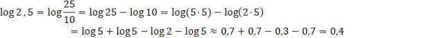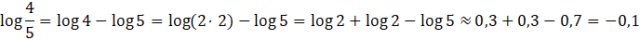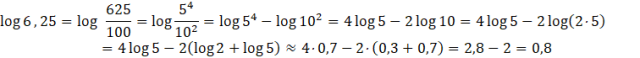 Oblicz podane logarytmy, korzystając z przybliżeń podanych w poleceniu oraz z własności logarytmów.