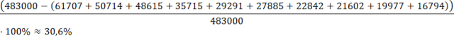 Oblicz jaki procent sprzedaży aut stanowią auta spoza pierwszej dziesiątki.