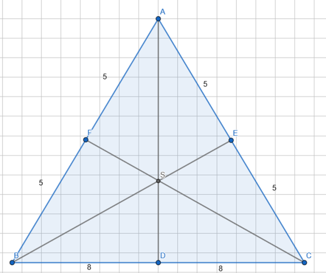 (punkt przecięć środkowych dzieli je w stosunku 2:1). Zatem mamy trójkąt prostokątny CDS, więc możesz skorzystać z twierdzenia Pitagorasa.