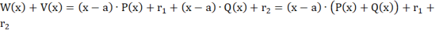 Powyższy zapis oznacza, że resztą z dzielenia wielomianu W(x) + V(x) przez dwumian (x – a) jest