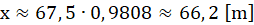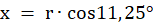 Obie gondole są oddalone od środka okręgu o r. Rozpatrujesz moment, gdy jedna z gondoli znajduje się w najwyższym punkcie: prosta prostopadła do promienia poprowadzona od gondoli sąsiadującej tej w najwyższym punkcie dzieli promień na dwa odcinki oznaczone przez h oraz x. Odcinek h jest różnicą wysokości tych gondoli. Kąt między promieniami poprowadzonymi do tych gondoli jest równy 11, 25°. Wykorzystując funkcję cosinusa obliczasz długość odcinka h.