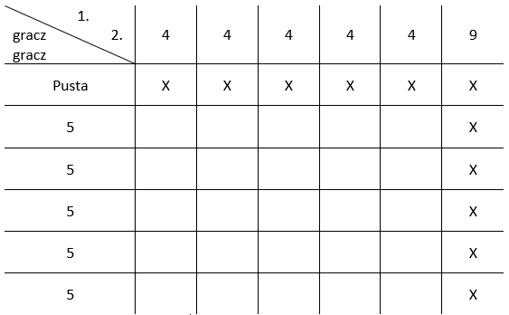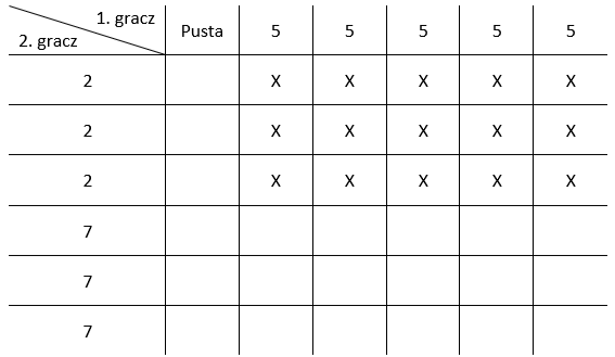 Jest to analogiczna sytuacja, jak wyżej z tym, że będą ze sobą zamienione wiersze i kolumny, oraz puste pola w tamtym przypadku będą zaznaczone, a zaznaczone – puste