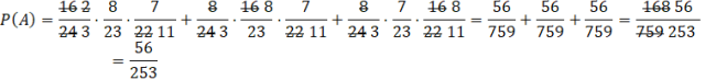 W tym zadaniu musisz wyliczyć, ile wynosi prawdopodobieństwo wylosowania tylko jednej figury, przy trzykrotnym losowaniu kart z talii liczącej 24 karty, w której są wszystkie figury a także dziewiątki i dziesiątki.