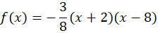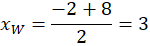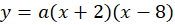 Zauważ, że miejscami zerowymi funkcji jest -2 i 8. Oblicz pierwszą współrzędną wierzchołka sumując miejsca zerowe, a następnie dzieląc przez dwa: