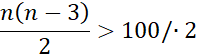 Najmniejsze dodatnie całkowite n to 16. By wielokąt miał więcej niż 100 przekątnych, musi mieć minimum 16 boków.