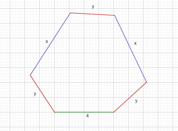 Twoja figura musi posiadać sześć boków, ponieważ 2x + 3y + 4 = x + x + y + y + y + 4. Kolejność boków może być dowolna, bo dodawanie jest przemienne. Nie zapomnij podpisać odpowiednich odcinków.