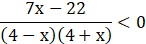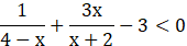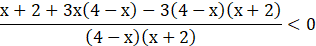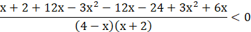 Określamy dziedzinę wyrażenia, wiedząc, że mianownik ma być niezerowy. Przerzucamy wszystkie wyrazy na jedną stronę nierówności i wprowadzamy na wspólną kreskę ułamkową. Dla dowolnych liczb rzeczywistych znak ilorazu jest taki sam jak znak iloczynu, więc rozpatrujemy wielomian będący iloczynem licznika i mianownika. Obliczamy jego miejsca zerowe i rozwiązujemy nierówność dla funkcji homograficznej.