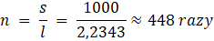 Droga s wynosi 1 km = 1000 m