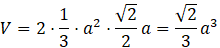 Objętość ośmiościanu foremnego oblicz zauważając, że są to dwa ostrosłupy prawidłowe zlepione do siebie podstawami. Wysokość jednego z tych ostrosłupów obliczysz, wykorzystując twierdzenie Pitagorasa na trójkącie prostokątnym utworzonym z krawędzi bocznej ostrosłupa, połowy przekątnej podstawy oraz wysokości ostrosłupa.
