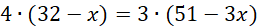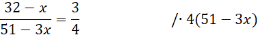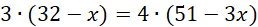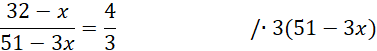 W tym zadaniu musisz utworzyć równanie spełniające warunki: Dany jest prostokąt o bokach 32 cm i 51 cm. Jego krótszy bok skrócono x cm, a dłuższy bok - o 3x cm i otrzymano prostokąt, w którym stosunek długości boków jest równy 3:4. Oblicz obwód wyjściowego prostokąta, obwód otrzymanego prostokąta i porównaj o ile się różnią. Pamiętaj, aby rozpatrzyć wszystkie możliwe rozwiązania.