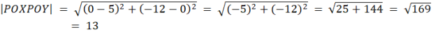 Wyznacz długość odcinka o końcach w punktach POX i POY dla prostej: