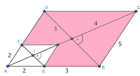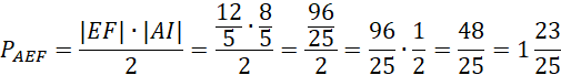 Wykonaj rysunek pomocniczy. Trójkąty AEF i ABD są równoramienne i mają wspólny kąt przy wierzchołku A. Oznacza to, że te trójkąty są podobne z cechy kkk. Wyznacz ich skalę podobieństwa. Następnie wyznacz długość |EF|. Kolejno wyznacz długość |AI|. Wyznacz pola trójkątów AEF i ABD i na koniec pole zacieniowanej figury.