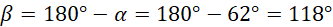 Zauważ, że po prowadzeniu przekątnych rombu powstały 4 przystające trójkąty równoramienne, których przyprostokątne stanowią połowy długości tych odcinków. Korzystając z funkcji tangens wyznacz przybliżoną miarę połowy szukanego kąta α i odczytaj ją z tablic trygonometrycznych. Następnie skorzystaj z faktu, że wraz z drugim kątem β tworzą kąt półpełny.