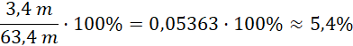 Błąd bezwzględny przybliżenia z niedomiarem długości korytarza do 60 m wynosi 3,4 m. Wylicz błąd względny tego szacowania.