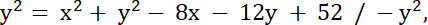 Rozważ odległość punktu P od osi OX oraz odległość punktu P od punktu (4, 6):