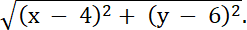 Oblicz odległość punktu P od punktu (4, 6):