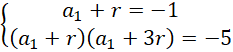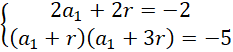 Ułóż układ równań. Zauważ, że drugi wyraz postępu jest równy -1. Ułóż kolejny układ równań, z którego obliczysz różnicę ciągu arytmetycznego. Po wykonaniu tej operacji oblicz pierwszy wyraz postępu.