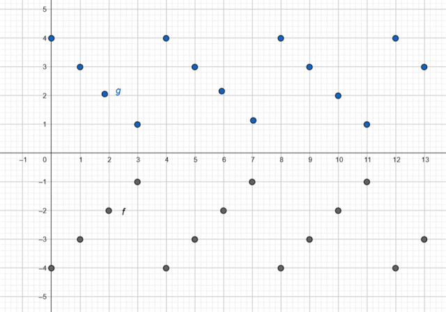 , czyli resztę z dzielenia przez 4 pomniejszoną o 1. Pary liczb z każdej kolumny, czyli powstałe punkty zaznacz w układzie współrzędnych, aby narysować wykres funkcji