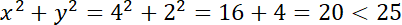 Na koniec sprawdź, czy suma kwadratów otrzymanych współrzędnych jest mniejsza od 25, czyli spełniony jest warunek