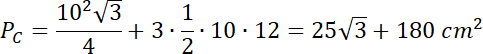 Na koniec oblicz pole całkowite bryły, czyli sumę pola podstawy i wszystkich ścian bocznych będących identycznymi trójkątami równoramiennymi.