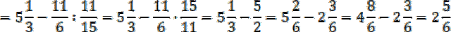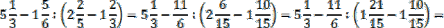 Pamiętaj o kolejności wykonywania działań: najpierw wykonaj działanie w nawiasie, po nim wykonaj dzielenie, a na koniec – odejmowanie. Przed wykonaniem odejmowania sprowadź ułamki do wspólnego mianownika (jeżeli liczba w liczniku odjemnika jest mniejsza od licznika odjemnej, zamień jedną całość odjemnej na ułamek i dodaj ją do licznika). Zapisz dzielną jako ułamek niewłaściwy, a dzielenie zastąp mnożeniem przez odwrotność dzielnika. Na koniec sprowadź liczby do wspólnego mianownika i wykonaj odejmowanie.