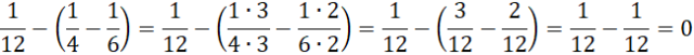 Wykonaj działania zgodnie z poprawną kolejnością – najpierw działania w nawiasach, następnie dodawanie i odejmowanie. Sprowadź ułamki do wspólnego mianownika, mnożąc licznik i mianownik przez tę samą liczbę, aby móc wykonać odejmowanie.
