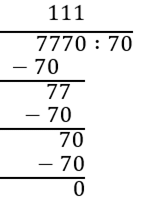 7770 : 70 = 111,