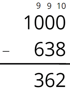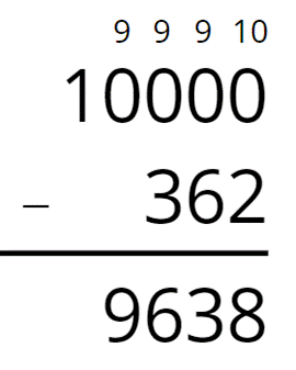 10 000 – (1000 – 638) = 10 000 – 362 = 9638