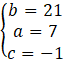 Z pierwszego równania wyznacz b w zależności od a, z drugiego b w zależności od c. Przekształć otrzymane zależności tak, by otrzymać zmienne a i c wyznaczone w zależności od b. Następnie podstaw dowolne b (na przykład 21) pod otrzymane równania, otrzymując w ten sposób współczynniki funkcji kwadratowej i w efekcie jej wzór w postaci ogólnej.