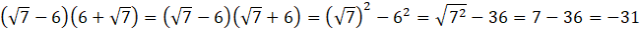 , korzystając ze wzorów skróconego mnożenia oraz praw działań na pierwiastkach.
