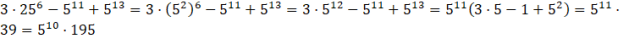 Liczba jest podzielna przez 195, jeśli po jej rozbiciu na iloczyn jednym z jego czynników jest 195.