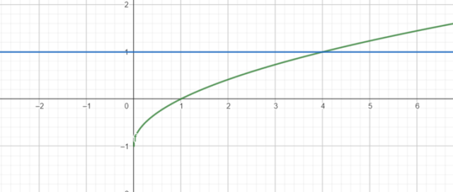 oraz g(x) = 1. Punkt przecięcia oby wykresów jest rozwiązaniem, w tym przypadku rozwiązaniem jest punkt x = 4