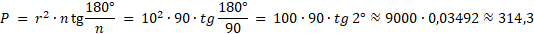 Oblicz pole 90-kąta foremnego opisanego na okręgu o promieniu 10.