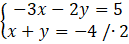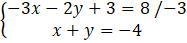 -3x – 2y + 2x + 2y = 5 – 8