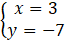 y = -7