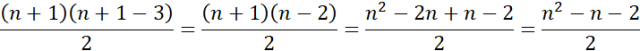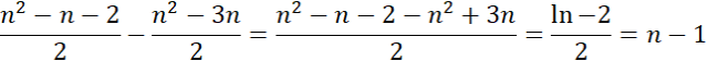 Różnica liczby przekątnych pomiędzy n-kątem a n + 1-kątem: