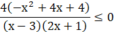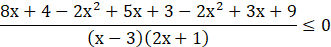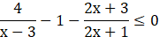 Określamy dziedzinę wyrażenia, wiedząc, że mianownik ma być niezerowy. Przerzucamy wszystkie wyrazy na jedną stronę nierówności i wprowadzamy na wspólną kreskę ułamkową. Dla dowolnych liczb rzeczywistych znak ilorazu jest taki sam jak znak iloczynu, więc rozpatrujemy wielomian będący iloczynem licznika i mianownika. Obliczamy jego miejsca zerowe i rozwiązujemy nierówność dla funkcji homograficznej.
