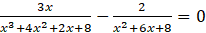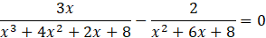 Doprowadź ułamki do jednakowych mianowników, rozwiąż równanie i sprawdź, czy wyniki należą do dziedziny: