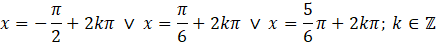 Oba równania połączone są spójnikiem „lub”. Finalnym wynikiem jest zatem suma rozwiązań obu z nich:
