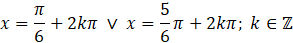 Rozwiązań tego równania jest nieskończenie wiele, a różnica pomiędzy kolejnymi z nich wynosi 2π, co można odczytać z wykresu funkcji sinus. Zatem: