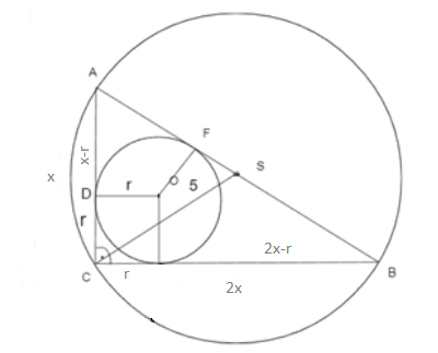 Zauważ, że przeciwprostokątna |AB| jest równa |AF|+|BF|. Zapisz równanie: