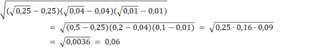 Upraszczaj po kolei wyrażenie – najpierw oblicz wartości „wewnętrznych” pierwiastków, później wylicz wartość pod pierwiastkiem i oblicz wartość całego wyrażenia.