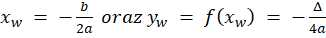 Skorzystaj ze jednego z wzorów dla wierzchołka funkcji kwadratowej: dla