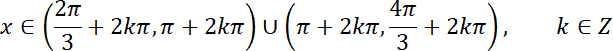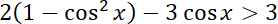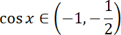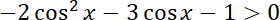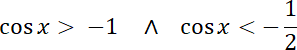 i rozwiąż otrzymaną nierówność kwadratową. Na podstawie rozwiązań zapisz zbiór wartości cosinusa i przedstaw do za pomocą koniunkcji dwóch nierówności. By je rozwiązać, posłuż się wykresem funkcji cosinus.