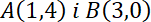 2. Podstaw wartości punktów A(4, 0)i B(0, 3)do równań prostej: