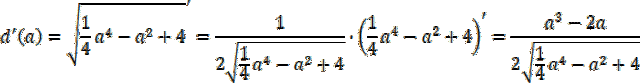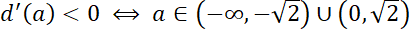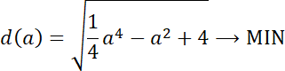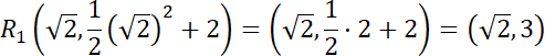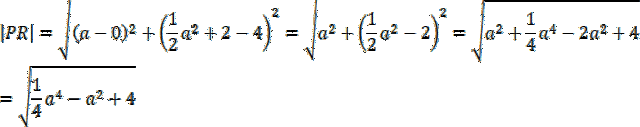 , którą jest funkcją celu dążącą do MIN. Kolejno wyznacz pochodną tej funkcji i wyznacz jej miejsca zerowe, a następnie określ znak tej pochodnej. Na tej podstawie określ przedziały monotoniczności i wskaż pierwsze współrzędne punktu R, dla którego osiągana jest najmniejsza odległość od punktu P. Wyznacz drugą współrzędną punktu, podnoszą pierwszą do drugiej potęgi.