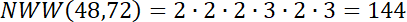 , jeśli x = 48, y = 72.