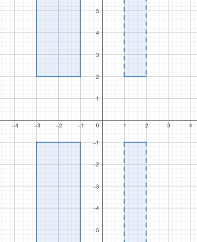 należące do podanych zbiorów. Zauważ, że powstaną prostokąty, których brzegi zawarte są w krańcach tych zbiorów.